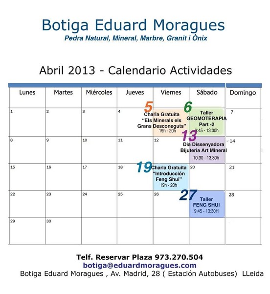 Si te gusta y quieres profundizar mas en el conocimento de los minerales, te proponemos el Taller de Geomoterapia dividido en 3 niveles. Los sábados por la mañana.