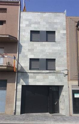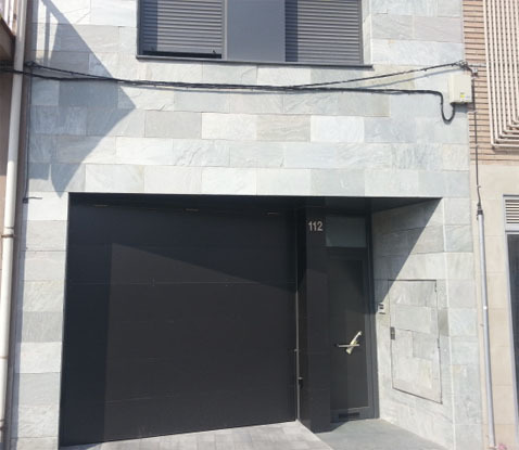 Fachada en formato baldosa 60x30 con la cuarcita verde agua multicolor